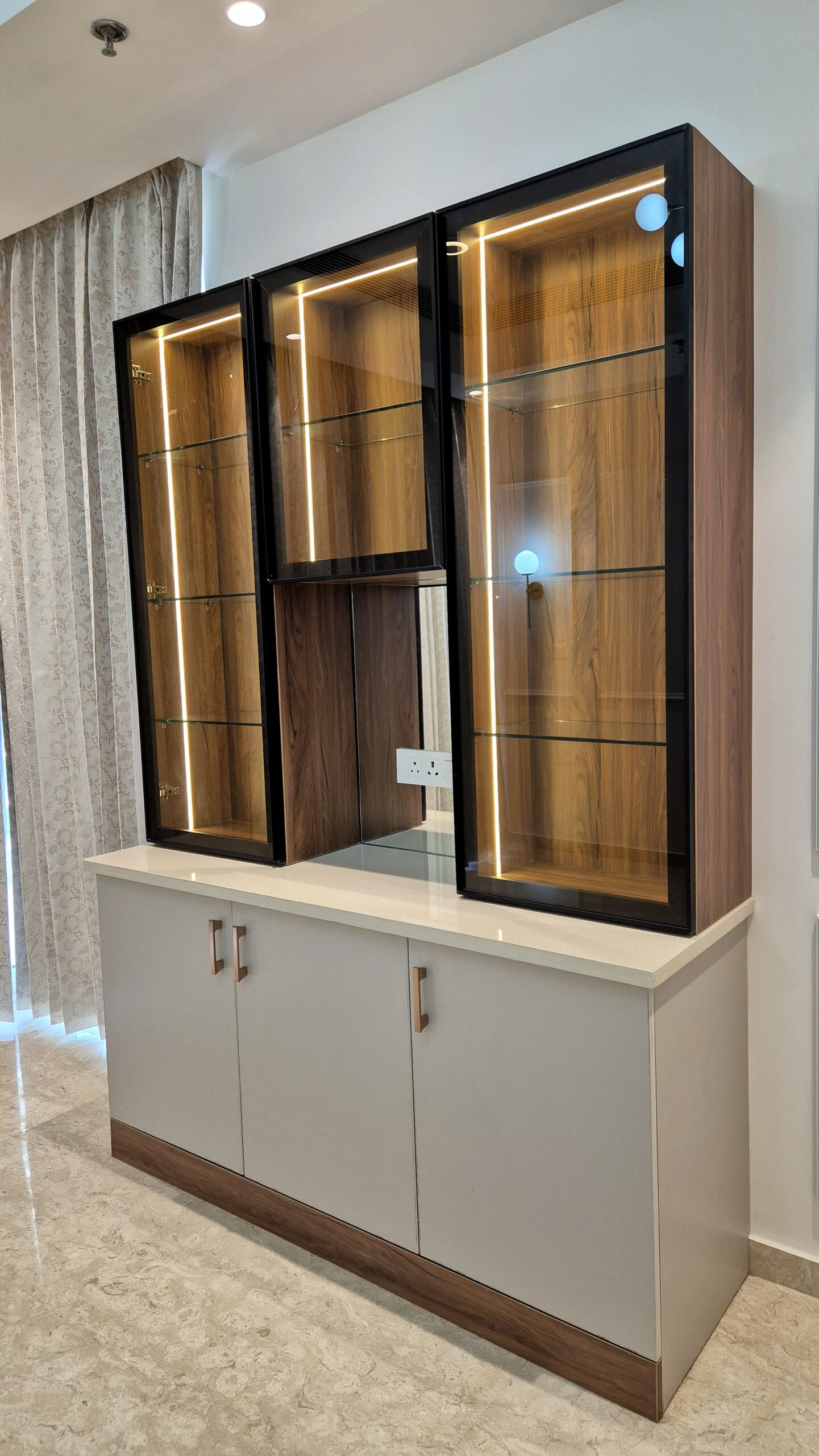 Our modular crockery unit solutions in India range from elegant display cabinets to contemporary, fully-customized storage systems designed to complement your dining and living spaces. Whether you prefer open shelves, glass-front panels, compact sideboards, or full-height crockery units, we tailor each design to your space, aesthetic, and functionality needs. From cozy apartments to expansive homes, our crockery units are crafted for optimal organization and visual appeal. Explore our curated crockery collections and redefine your dining experience with refined design and smart storage.